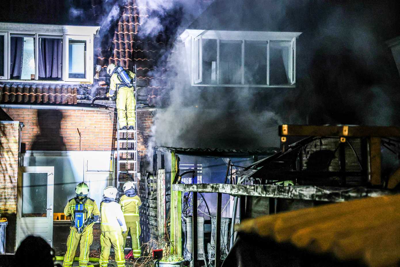 Twee personen zijn uit voorzorg overgebracht naar het ziekenhuis voor controle. Over de oorzaak van de brand is op dit moment nog niets bekend. Door het vuur hebben in ieder geval twee woningen aanzienlijke schade opgelopen.